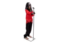Bent u nog op zoek naar de juiste highlight voor uw thema of halloweenfeest? Alleen het grijze, extra grote gezicht van Magere Hein met zijn grove trekken mist zijn effect op de toeschouwer niet. In elk van de enorme oogkassen zit een rode knipperende LED. Terwijl een stem met spookhuisgeluid te horen is, kantelt het lichaam van de buste naar links en rechts via een excentrische aandrijving. De dode man is gekleed in een gescheurde mantel met een kap met grote benige handen aan de uiteinden. De animatie wordt geactiveerd door een geïntegreerde microfoon of een bedrade, handmatige bediening.