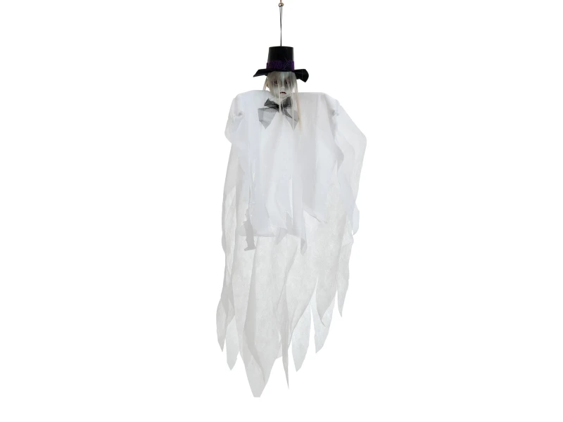 Deze vrouw ziet er echt eng uit, ze schijnt door en is een leuke decoratie om ergens op te hangen.