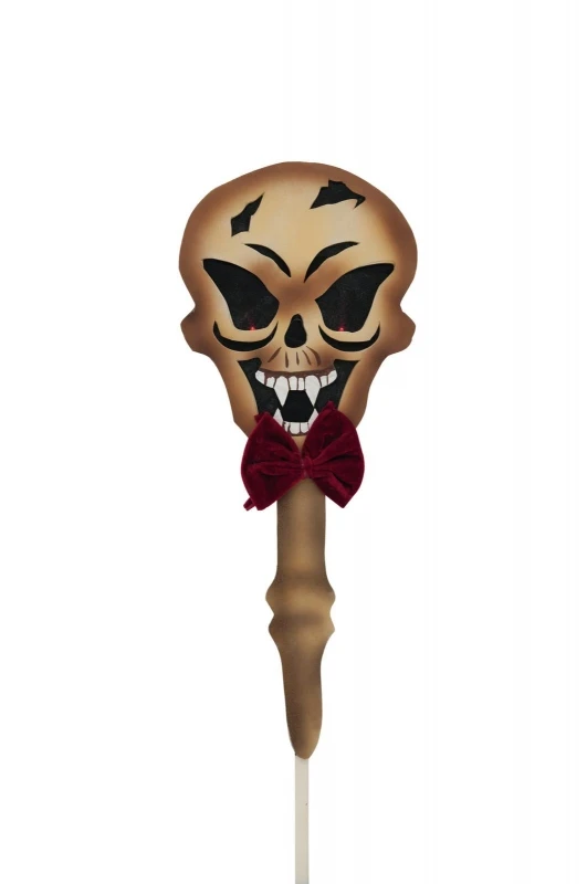 Halloween schedel op grondprikker met rode LED lampjes in de ogen.