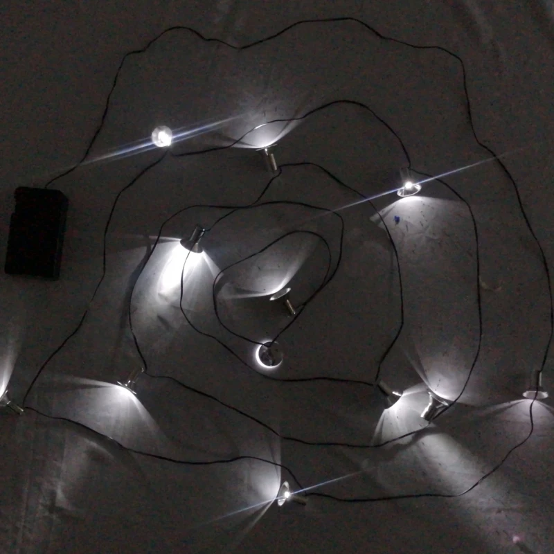 Zodra je de lichtslinger aanzet gaan de lichten flikkeren en komt er spooky halloween geluid uit. Verschillende halloween geluiden ingebouwd.